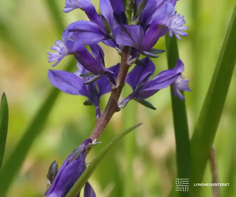 På voksestader med låg pH vert blomane fiolette på farge. Det mest særprega med denne planten er sjølve blomen. To begerblad lagar ein blå reklameplakat, og tre kronblad veks saman til eit blått røyr, ytst med nokre kvite frynsar. Inni dette røyret er det ein sinnrik mekanisme som skal sikra at planten ikkje befruktar seg sjølv, så sant kunnige humler og bier finn ut av systemet. Hvis ikkje har planten ein sikringsventil som gjer at den befruktar seg sjølv likevel. For frø skal det bli!'