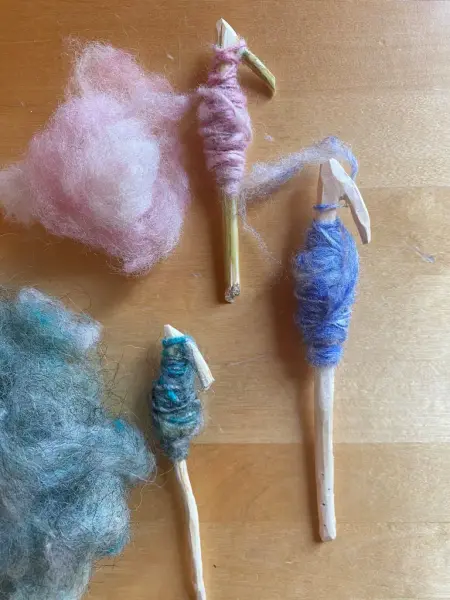 Kl 13 Vi spikkar reidskap og spinn tråd mm.