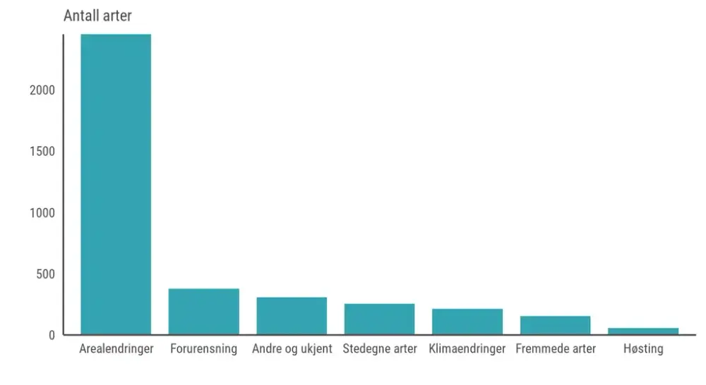 Når ein art havnar i ein av raudlistekategoriane er det som regel fordi bestanden minkar kraftig, eller at den er svært fåtallig i utgangspunktet. I tillegg bidrar ofte øydelegging av leveområder til at risikoen for at arten forsvinner frå Noreg, og i nokre tilfeller frå heile verda, aukar. Øydelegging av leveområder ved at desse områda vert bygd ned eller får ein sterkt endra bruk er den klart viktigaste årsaken til at ein art blir plassert i ein rødlistekategori.