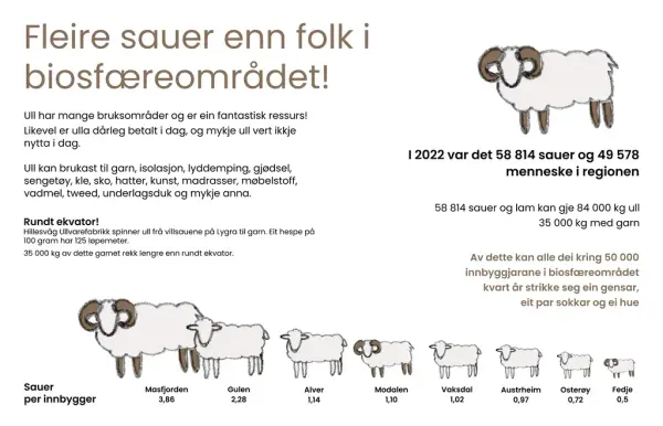 Sauene i Nordhordland kan gje om lag 84 000 kg ull i året - nok til å lage garn til ein gensar, ei hue og eit par sokkar til kvar av innbyggjarane i biosfæreområdet - kvart år.