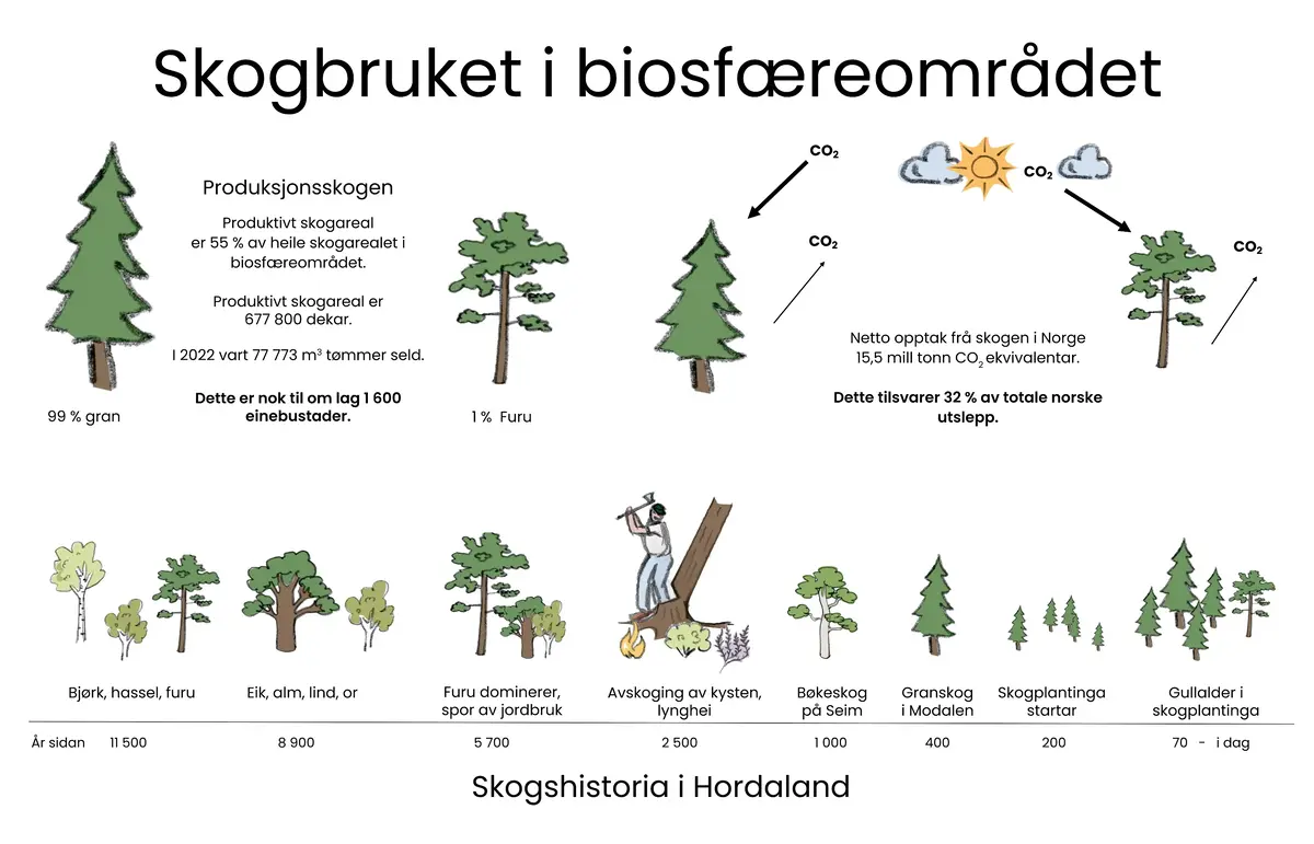 Trea har alltid vore ein viktig ressurs for menneska i Nordhordland. Dei ulike treslaga har ulike eigenskapar.