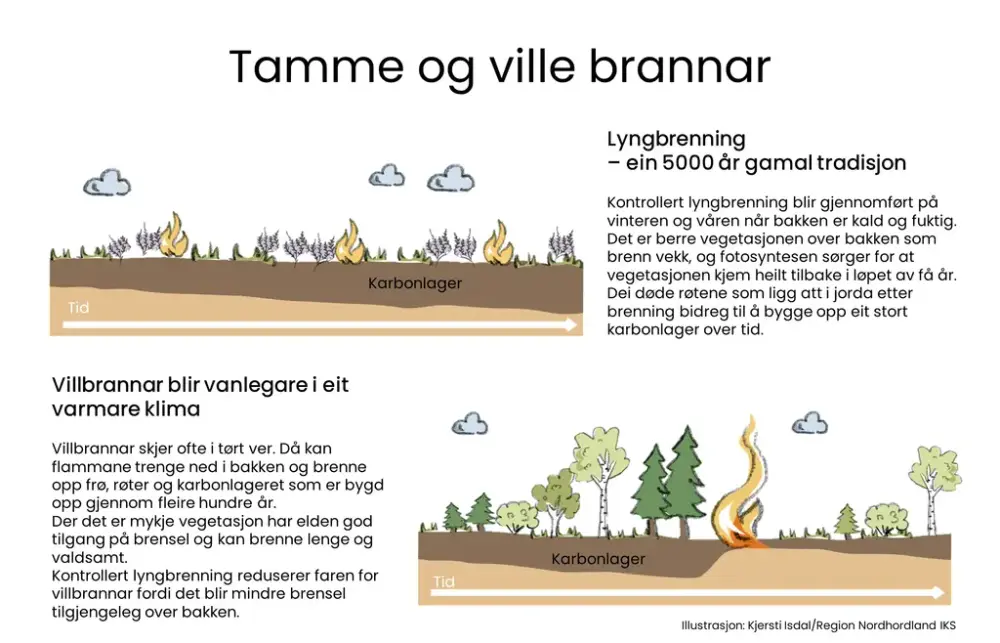 For om lag 5 000 år sidan tok dei tidlege innbyggjarane i Nordhordland i bruk eld som verktøy for å endre landskapet, i likskap med andre menneske langs heile den europeiske Atlanterhavskysten. Ved å brenne vekk grov og gamal vegetasjon skapte dei nye, friske beiter for husdyr, og slik vart dei europeiske kystlyngheiene skapt.