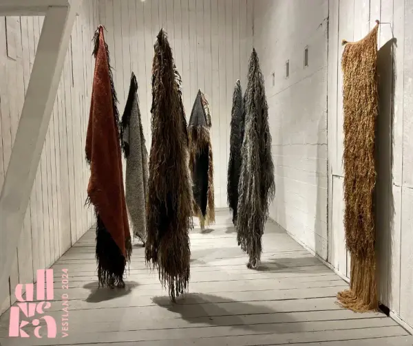 Tekstilkunstnar Hanne Thyholdt heldt til på ærverdige Lonebekken Kraftstasjon, saman med keramiker Trond Skog. Les meir på heimesidene deira her. Utstillinga hennar kan du sjå allereide frå sundag 15. september.