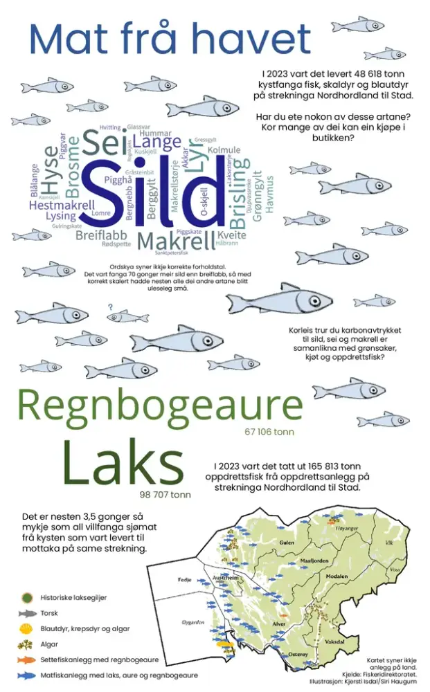 Korleis trur du karbonavtrykket til sild, sei og makrell er samanlikna med grønnsaker, kjøt og oppdrettsfisk?