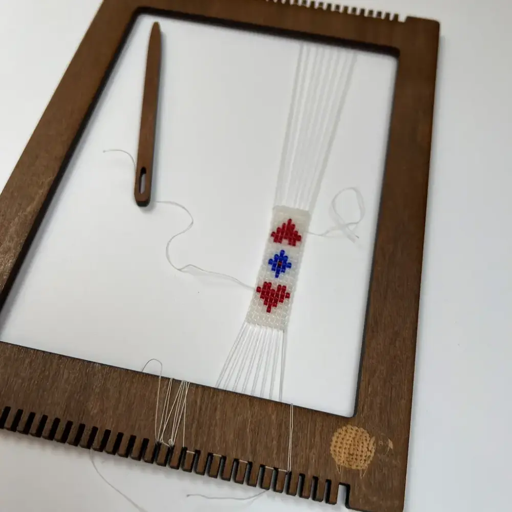 På aktivitetsdagen 2. juli får du bli med å teste perleveving. Lær og lage smykker og armbånd av perler på ein minivev. Kom innom frå kl. 11 til 14. Vi skal være i hovudsalen.