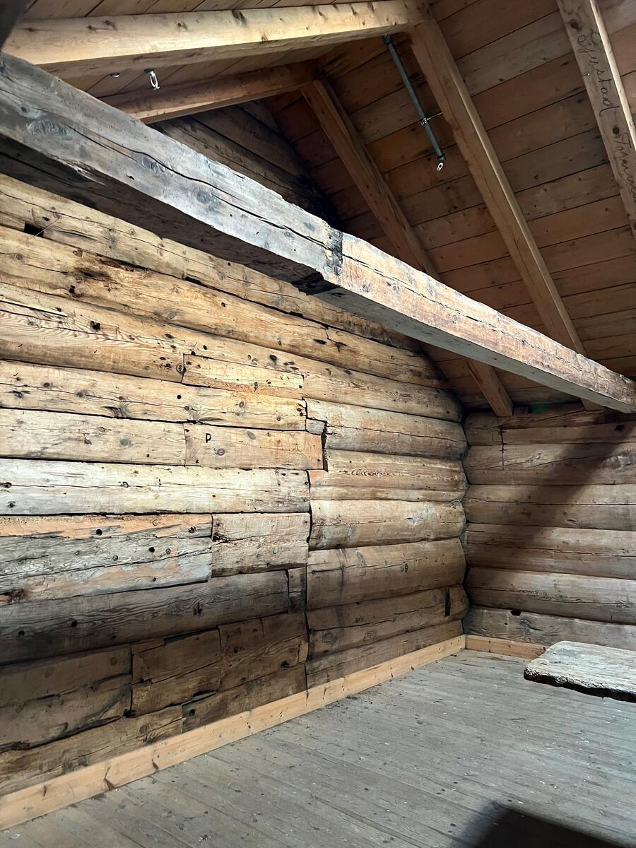 Dette var det første huset Gjerstad Fornminnelag reiste i museumstunet. Den vert I dag brukt til skiftande utstillingar.