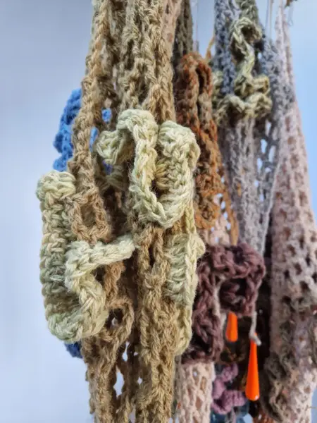Velkomen til ei utstilling der sopp- og plantefarga tråd er i fokus.