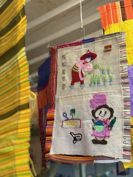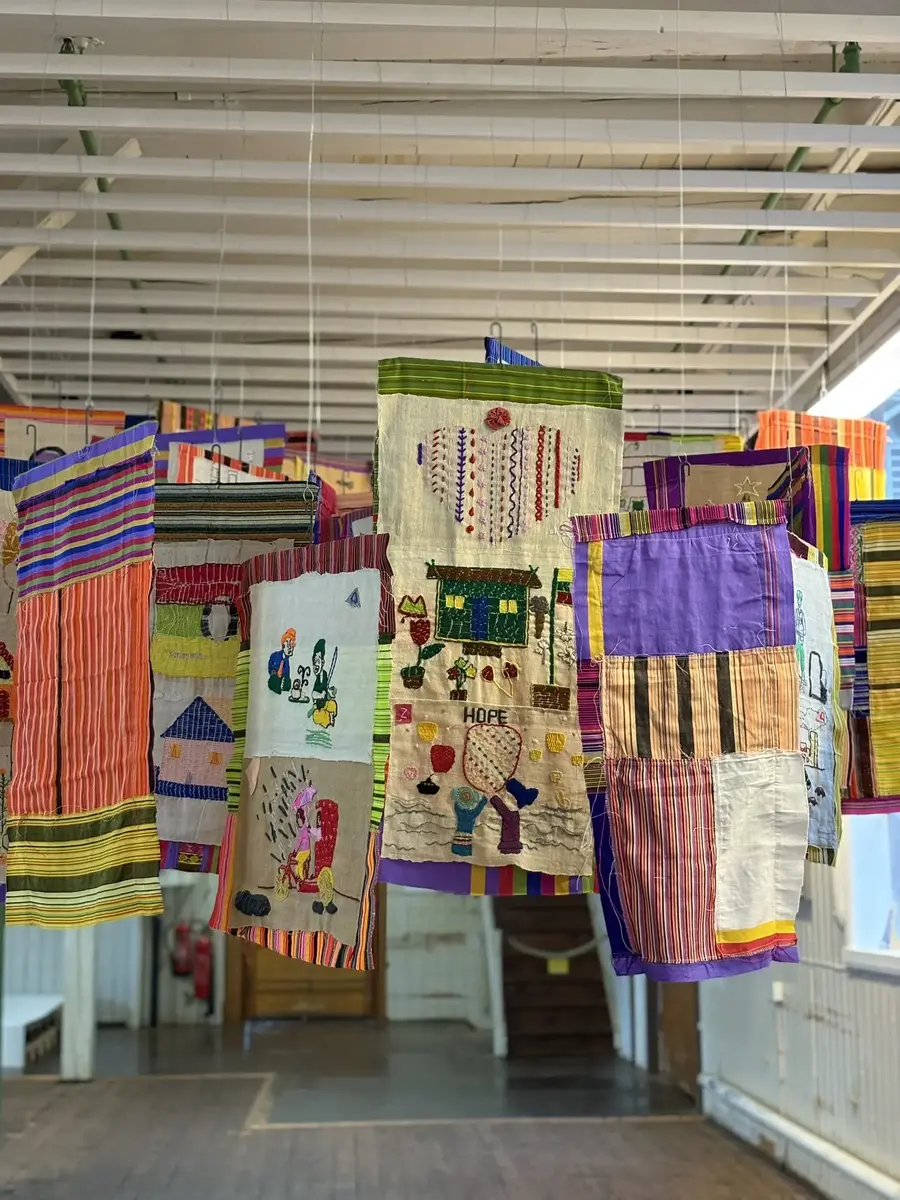Tekstilene stilles ut samlet og danner et tak av ulike størrelser som skaper et skjermet rom der kollektive historier fra forskjellige samfunn kan tre frem og berøres. På Tekstilindustrimuseet har prosjektet utviklet seg videre gjennom verksteder som skal bidra til nye lag av minner, arbeid og stedsforankring.
