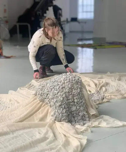 Kursholder Katinka Halland er tekstilkunster med mastergrad fra fra Fakultet for kunst, musikk og design, Universitetet i Bergen.