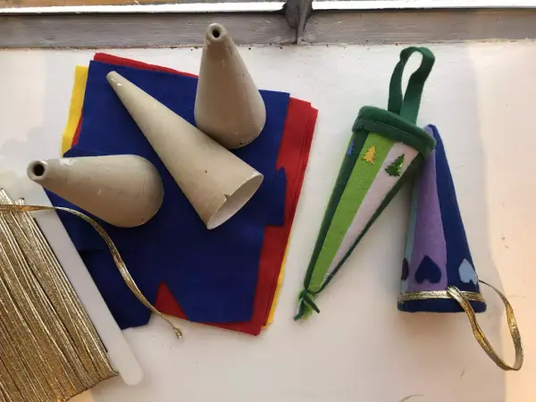 Vi lager julepynt med filt og koner.