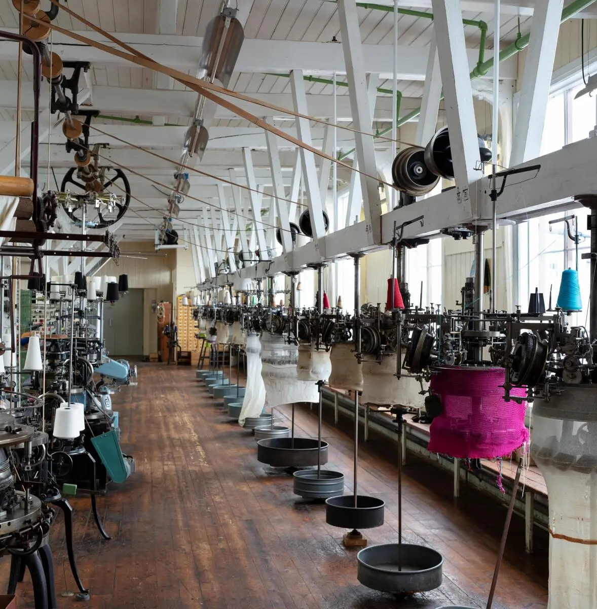 Bli med på maskinomvising i Salhus Tricotagefabrik og sjå korleis ull og bomull blir til kler. Omvising kl. 12 og 15. Du kan òg utforske spoleloftet og karderiet på eige hand.