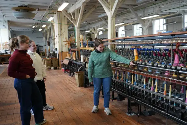 Kvar opningsdag i juli og august kan du bli med på omvising og kjenn karda ull mellom fingrane, høyr maskinstøyen og sjå gamle maskiner som framleis tvinner og spoler garn.