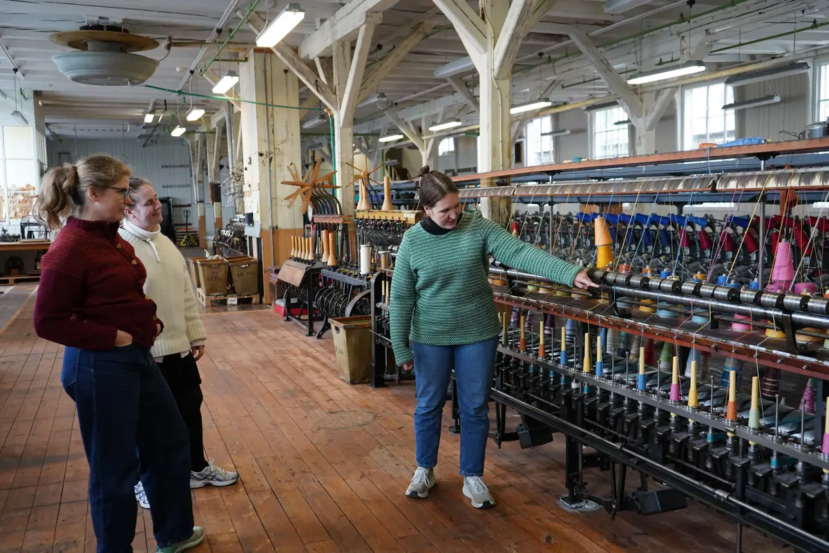 Eit besøk i fabrikken tek deg med inn i den eldste delen av fabrikkanlegget, og følger produksjonslinja frå karding, spinning og spoling til strikka metervare og ferdigsydde plagg. Utforsk spoleloftet, karderi/spinneri og syloftet på eiga hand.
