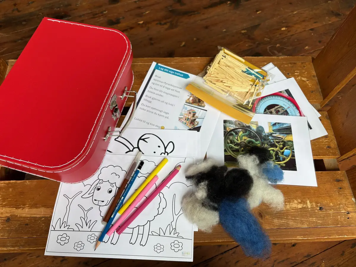 Kofferten er gratis å låne, og inneheld fabrikkjakt, handarbeidsaktivitetar og spørsmålskort.