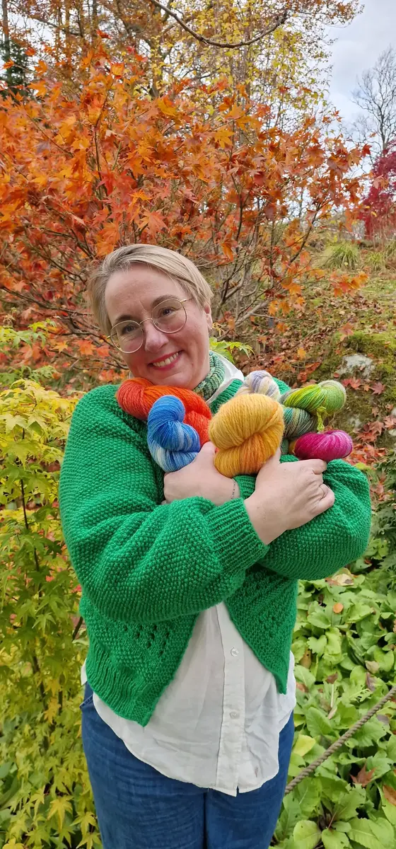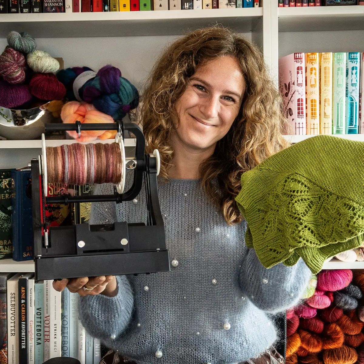 Bak SkaperCraft står Anne Amalie med god hjelp fra mannen hennes. SkaperCraft startet som en minibedrift med fokus på strikketilbehør men har utviklet seg til en ganske rikholdig knappebutikk, litt strikkedesign og ikke minst garnfarging.