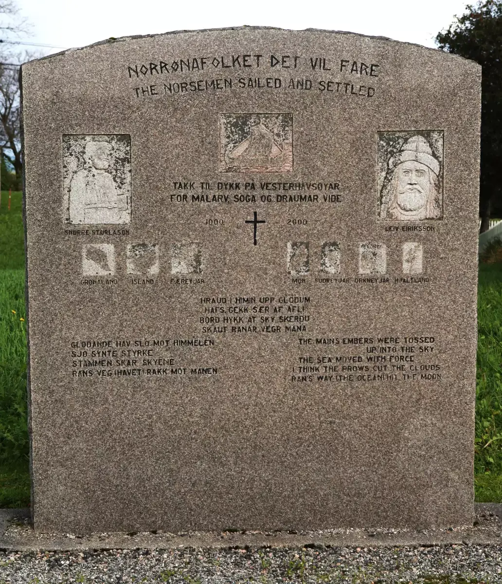 The Norse monument was unveiled at the Emigration Festival in 2000. The monument was erected together with the Vestmannalaget as a memory of the many emigrants who went west.