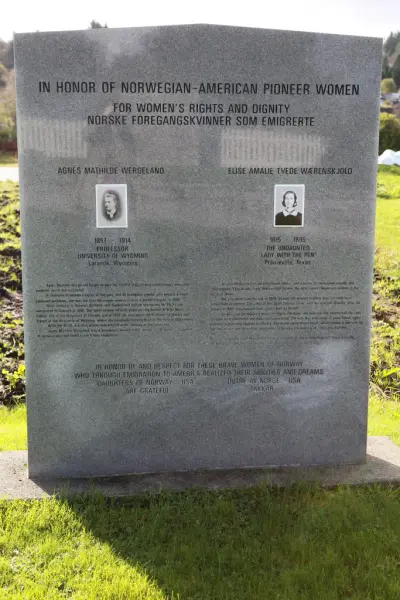 Kring Emigrantkyrkja finn du minnesteinar som forteljer ulike historiar om den norske utvandringa. Ideen om å "hogga" norsk utvandringshistorie i stein var med frå oppstarten av Vestnorsk Utvandringssenter, og minnesteinane har blitt reist mellom 1997-2010. Alle steinane er laga av steinhoggaren Reidar Rosnes og blitt reist i samarbeid med ulike lag og organisasjonar som har si soge å fortelje.