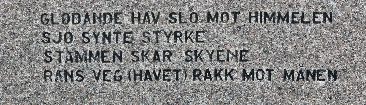Dette skaldekvadet står skrive på Norønna-minnesteinen på Sletta. Rans veg var havet, og havet knytte saman, det skilde ikkje.