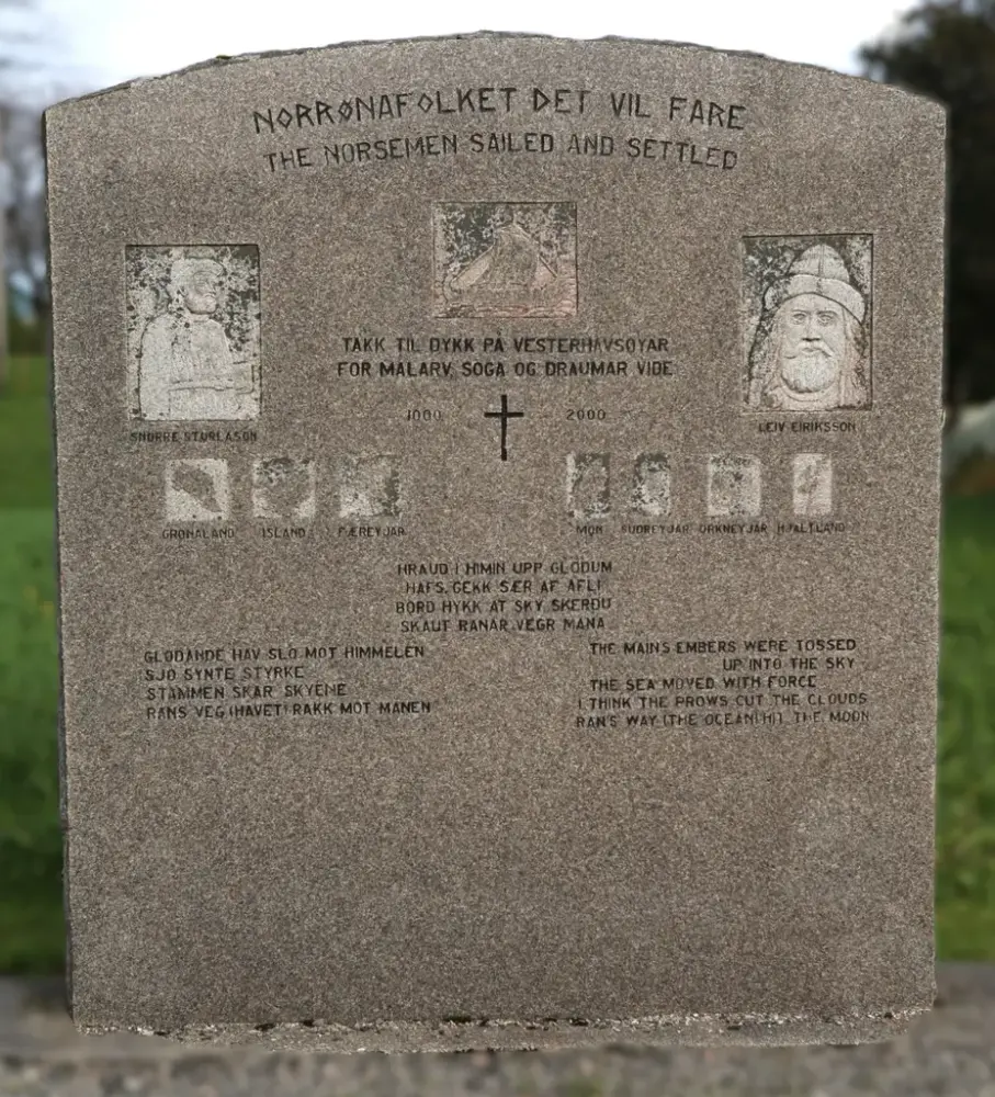 Norønna-monumentet vart avduka i samband med Utvandringsfestivalen i år 2000. Steinen er reist i saman med Vestmannalaget som eit minne over dei mange utvandrarane som for i vesterveg. Avdukinga vart gjort av heiderslagmedlem i Vestmannalaget, Eigil Lehman og fleire andre sentrale lagsmedlem.