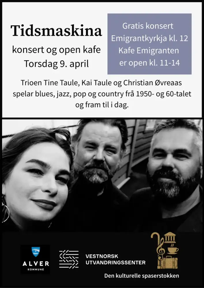 Trioen Tine Taule, Kai Taule og Christian Øvreaas tek med seg instrument og songstemme, og ikkje minst eit knippe musikk av god årgang. Dei spelar blues, jazz, pop og country frå 1950- og 60-talet og fram til i dag. Dei er no på turne med sin tidsmaskin og har hausta særs gode omtaler etter besøk omkring i Bergensregionen.